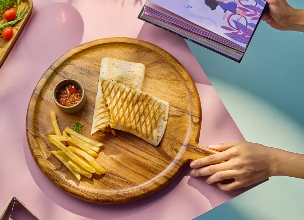 Crispy, spicy fried chicken, lettuce, pickles, and creamy mayo, all wrapped up in a soft tortilla for a fiery bite.